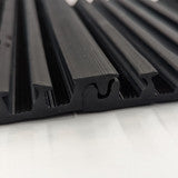 9" long and available in standard sizes up to 36" wide. 4 interlocked sections make exactly 36" of matting.