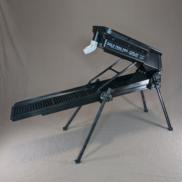 Meet the Gold Trek Backpack Highbanker, a revolutionary ultralight sluicing system designed for the modern prospector. Packing production-grade performance into a portable, rugged design, this highbanker weighs in at only ~13 lbs fully assembled—light enough to carry into remote areas, but powerful enough to process a yard per hour of gold-bearing gravel!