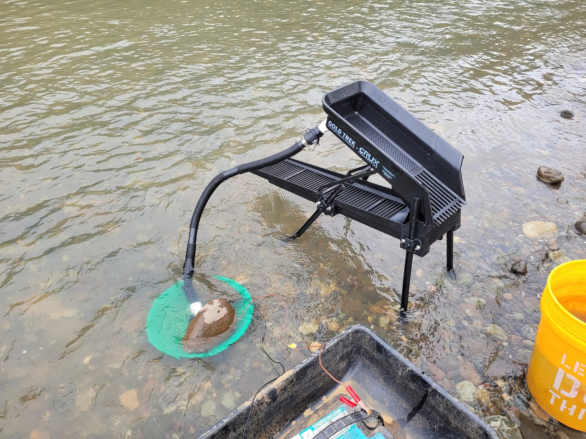 - Efficient Gold Capture: 36" sluice box with textured V‑groove hopper floor, a damper flap and Crux Drop Riffle Sluice matting for ultra fine gold recovery